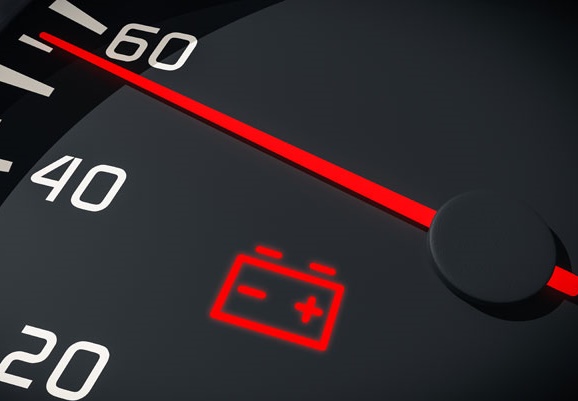 في غالبية السيارات يضئ رمز البطارية باللون الأحمر، ويتخذ نفس التصميم الخاص بالبطارية، بظهور القطب السالب والقطب الموجب به.