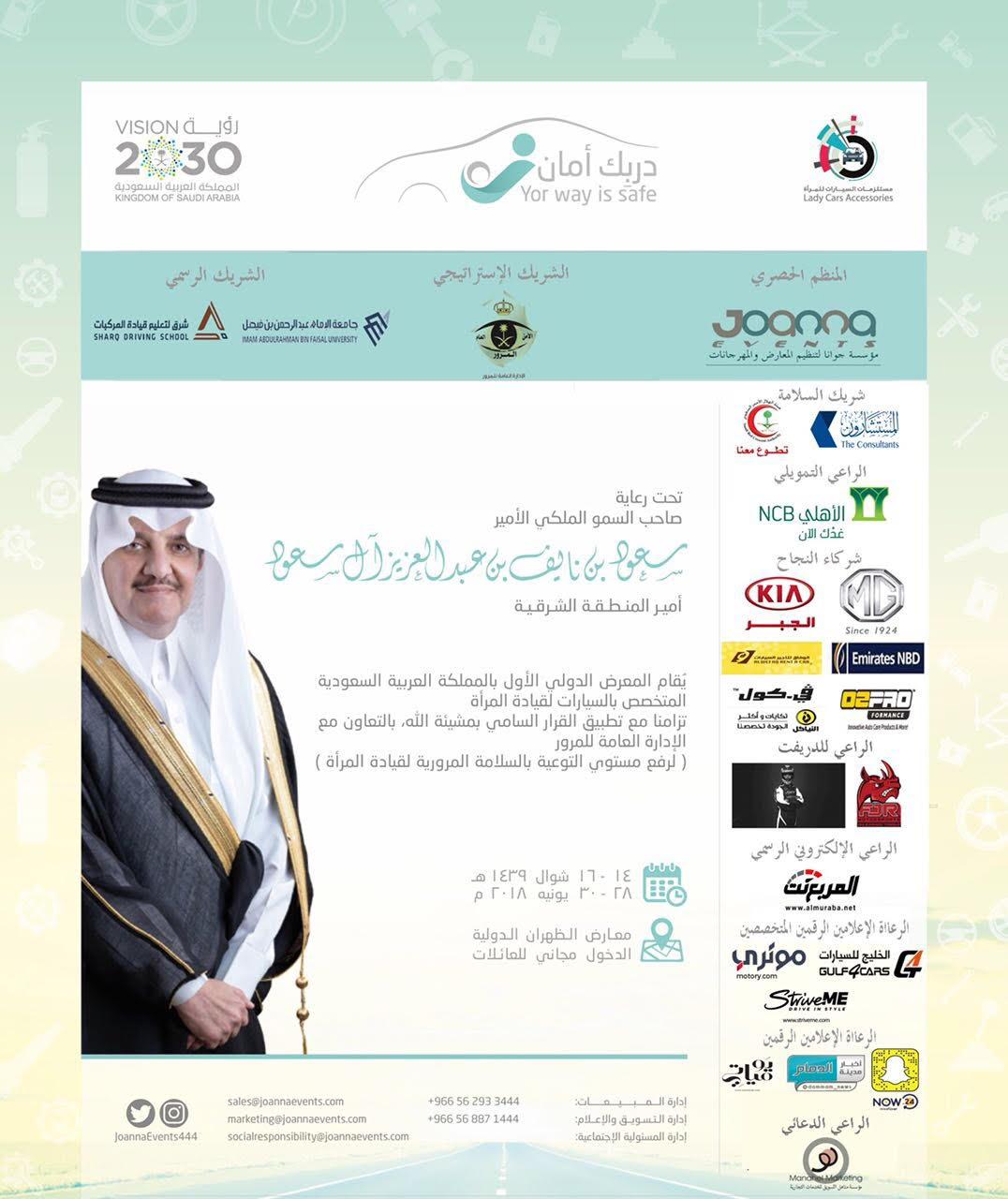 ونقدّم الدعوة للجميع للمشاركة معنا في هذا الحدث الدولي المتخصص بالسيارات والوحيد بالمملكة المتزامن مع تطبيق القرار السامي لقيادة المرأة والذي سيكون حديث الجميع في عالم اخراج المعارض تنظيميا بالمملكة وقد راهنا على ذلك.