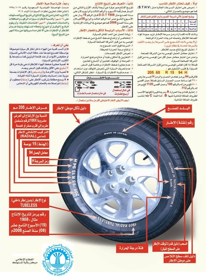 وقام مركز رعاية المستهلك التابع للغرفة التجارية الصناعية بالرياض بنشر مجموعة من النصائح المفيدة عند شراء عجلات جديدة حتى لايتعرض المشتري للغش، كما ذكرت بعض المعلومات المتعلقة بتاريخ صلاحية الإطارات وسبب تلفها.