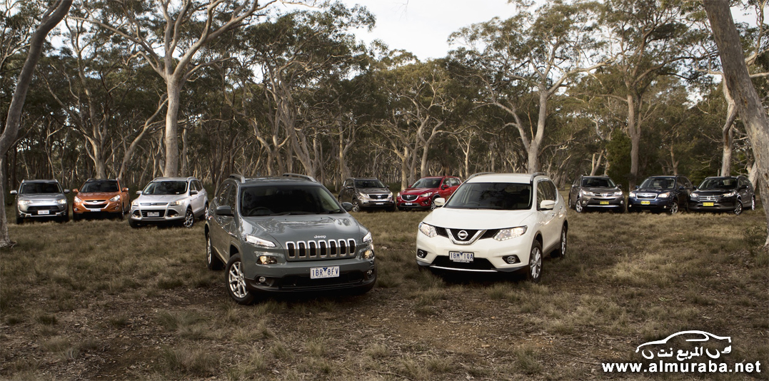 “Jeep Cherokee v Mazda CX-5 v Toyota RAV4 v Nissan X-Trail v Ford Kuga v Subaru Forester v Hyundai ix35 v Honda CR-V v Mitsubishi Outlander v Kia Sportage”