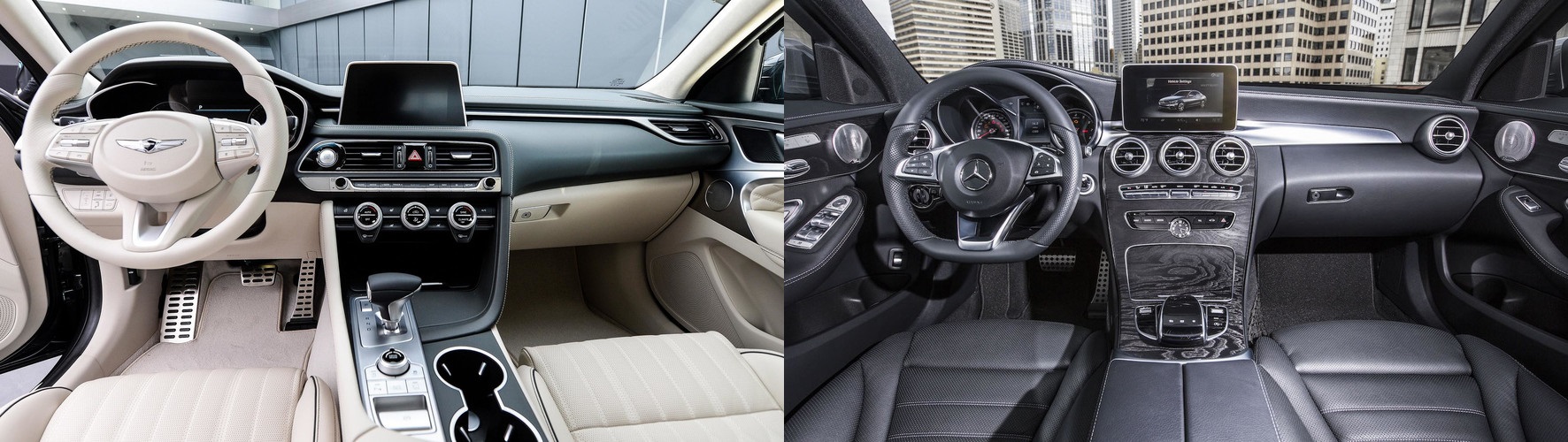لدى جينيسيس G70 مقبض دوّار للتحكم في شاشة الترفيه المركزية وذلك إلى جانب القدرة على إمكانية التحكم بها باللمس، إلا أن الفئة الثالثة وA4 وC-Class يقدمون مقابضًا أكثر تقدّمًا كما يمكن لشاشاتهم اللمسية أن يُكتب عليها.