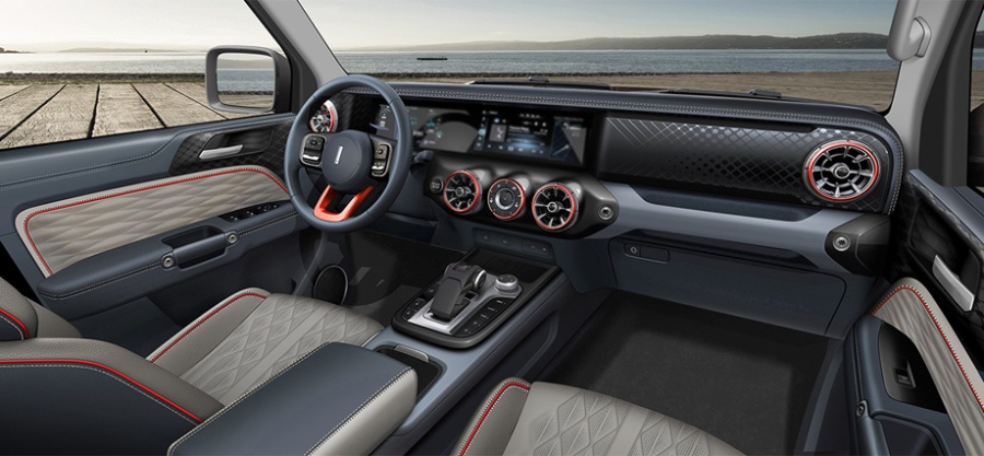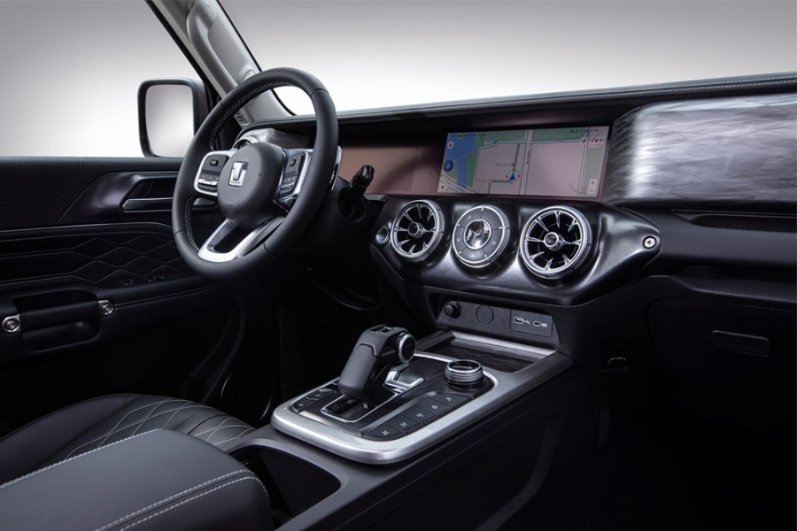 وعند النظر داخل السيارة، ستعرف أنها مهيأة للاستخدام في البرية مع الكثير من المقابض المساعدة في قمرة القيادة، إلى جانب المواد عالية التحمل للاستخدام في بيئة قاسية، ومع ذلك، تجد الكثير من عناصر الراحة والتكنولوجيا الحديثة بما فيها كسوة جلد المقاعد نابا ودعم التبريد في المقاعد الأمامية والتدليك في مقعد السائق.