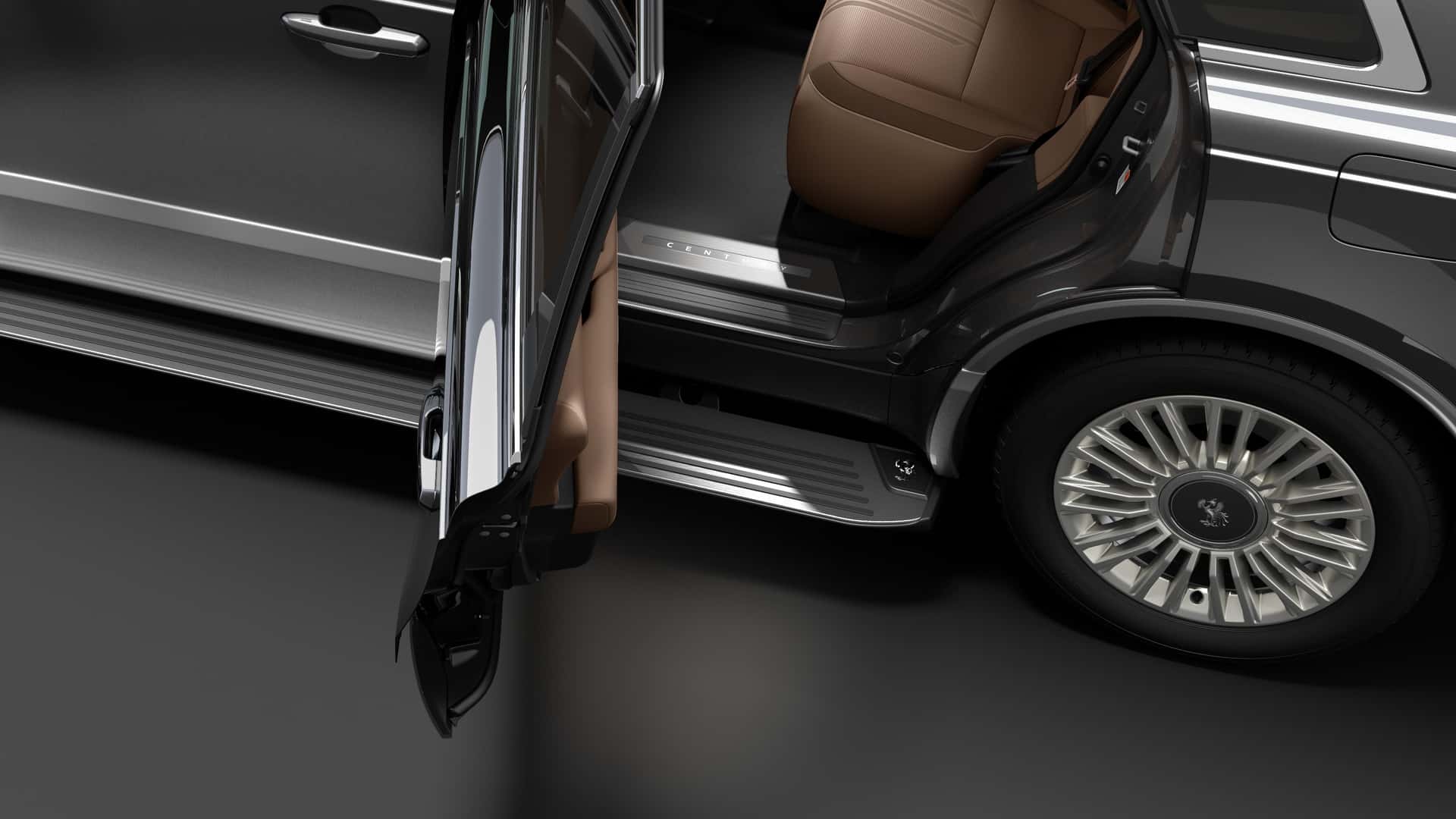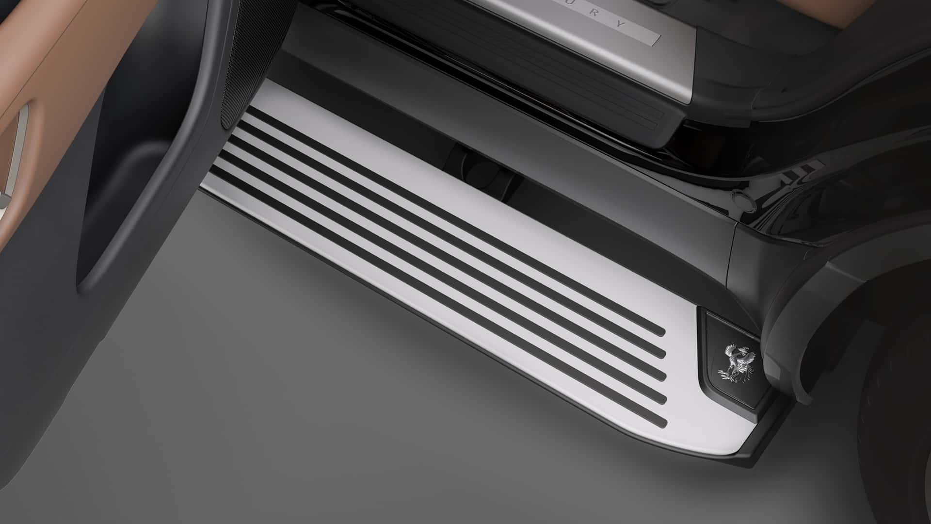 كذلك جاءت مقابض الأبواب والمرايا الجانبية بلون الهيكل نفسه، بالإضافة إلى ذلك يوجد عتبات جانبية كهربائية تظهر عند الصعود والنزول من السيارة.