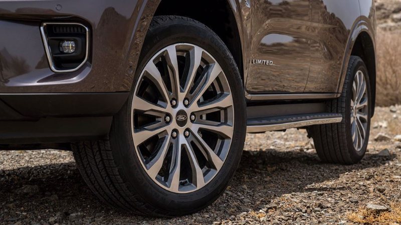 ترتكز السيارة على عجلات من المعدن باختلاف المقاسات، فكما سبقت الإشارة لعدم التشابه التام في مواصفات فورد ايفرست 2024 بالاستناد لوجود 3 فئات، وعلى وجه التحديد فالسيارة قد تظهر بالارتكاز على عجلات مقاسها 21 بوصة أو 18 بوصة.
