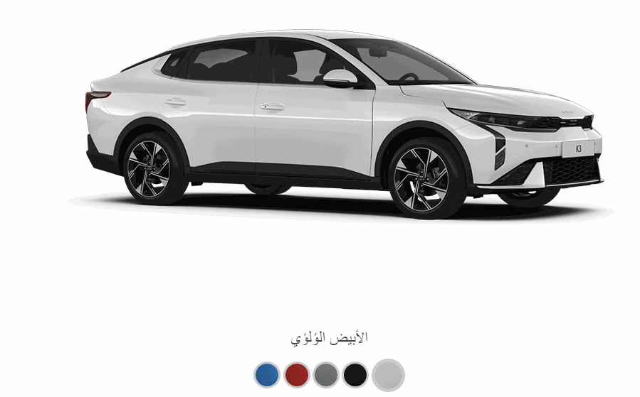 ستتوفر كيا K3 بخيارات بعدة ألوان خارجية، إليكم عينة لما قد تبدو عليه السيارة بالخيارات التي تشمل الأبيض اللؤلؤي والأسود اللؤلؤي والرمادي والأحمر والأزرق.