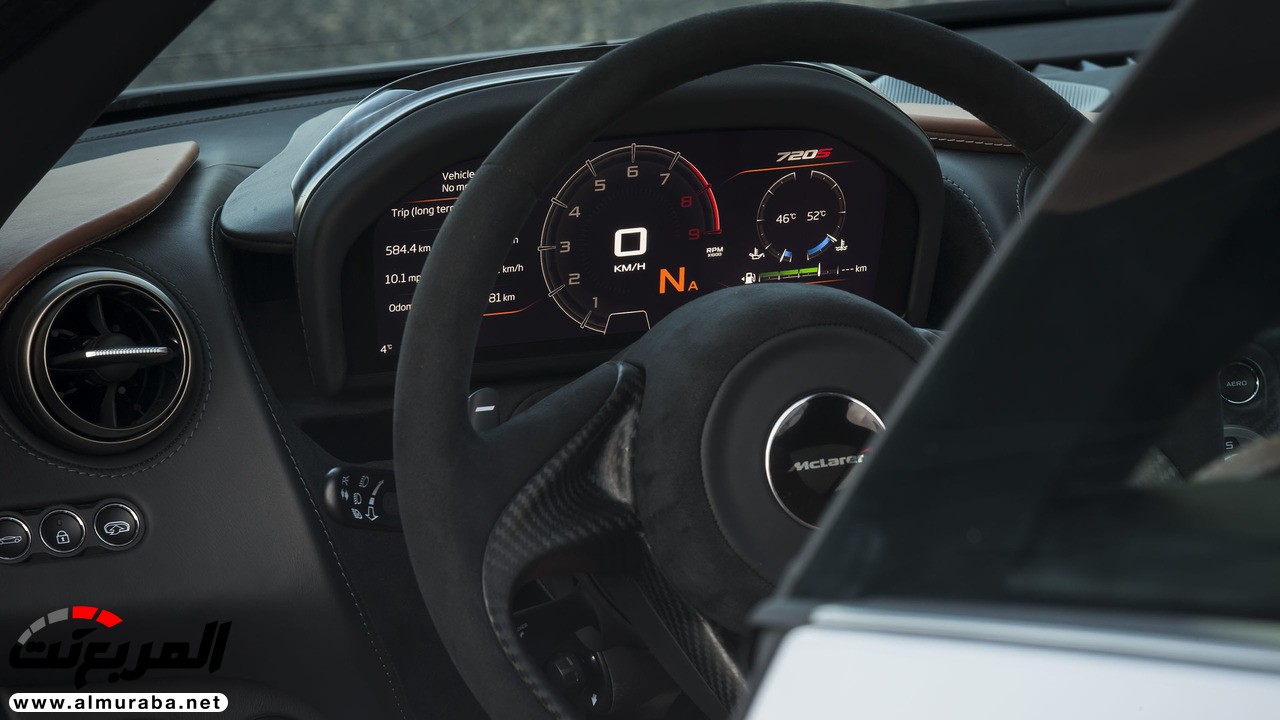 بالطبع ما يميز السيارة ليس قوتها او تسارعها فقط، بل خفتها وتوجيهها، حيث تعتبر الـ 720S أخف سيارة صنعتها مكلارين ضمن السلسلة الخارقة، بفضل هيكلتها المركزية من الألياف الكربونية، ليصل وزن السيارة إلى 3,128 باوند، أي أقل من الـ 650S كوبيه.
