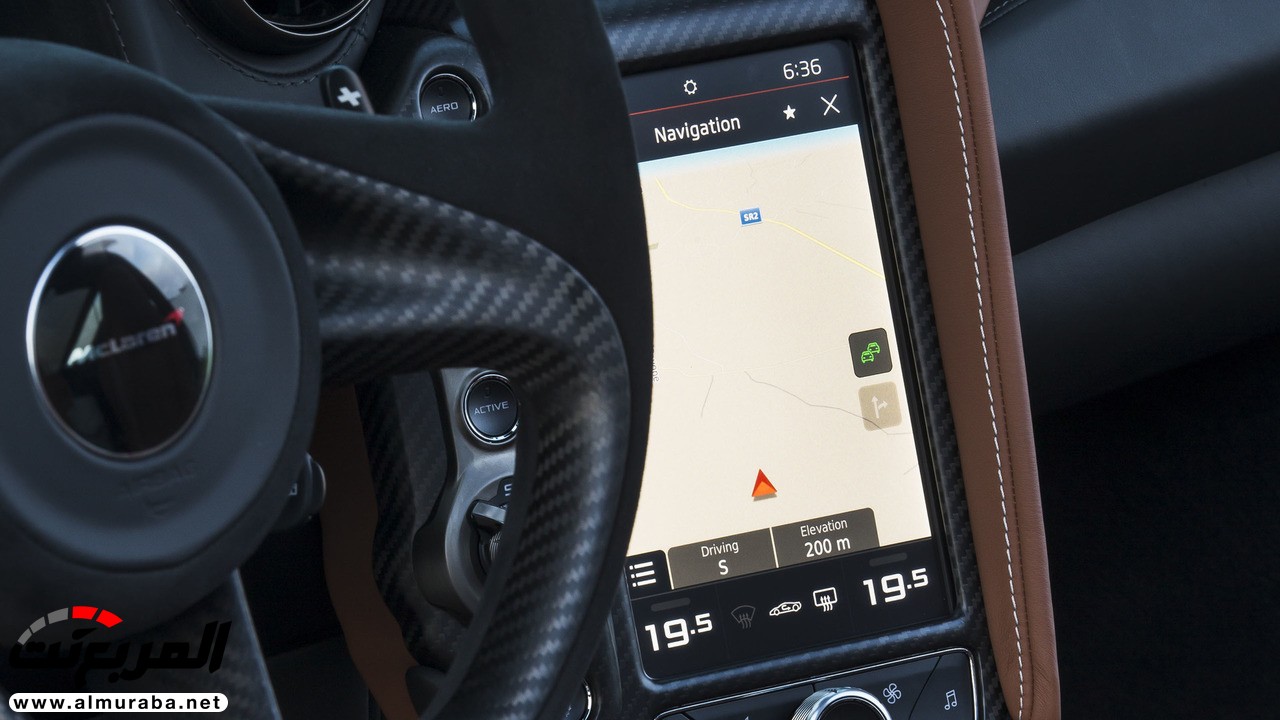 وتأتي السيارة بالنسخة الأحدث من نظام المعلومات الترفيهية لمكلارين، بشاشة لمس رأسية يسهل التعامل معها نسبيا، بينما لوحة القياسات المركزية كلها رقمية ومباشرة، بالإضافة إلى نظام ملاحة جيد وخاصية تسخين وتبريد المقاعد وأغطية على جيوب الأبواب لمنع الأشياء من التساقط على الأرضية، وقد أبدعت مكلارين بشكل خاص في نظام توجيه السوباركار الجديدة، حيث يمكن توجيه المقود بإصبع واحد مع كاميرات 360 درجة وكبح خلفي.