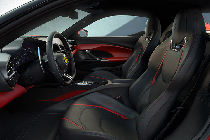 وبطبيعة الحال، زودت العلامة الإيطالية مقصورتها بتلك اللمسات الرياضية الفاخرة التي تميز فيراري عن غيرها من العلامات.