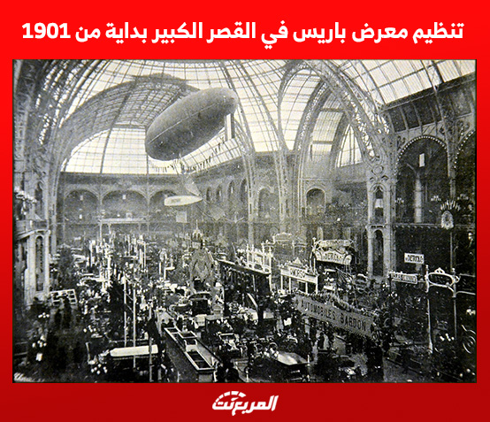 - ثم جاء عام 1901، حيث تم تنظيم المعرض في “القصر الكبير Grand Palais” الذي يقع على شارع الشانزليزيه في باريس، وهذا ما أكسب المعرض شهرةً كبيرة، كما أضاف بعض المركبات الأخرى للمعرض مثل السفن والدراجات والمناطيد.