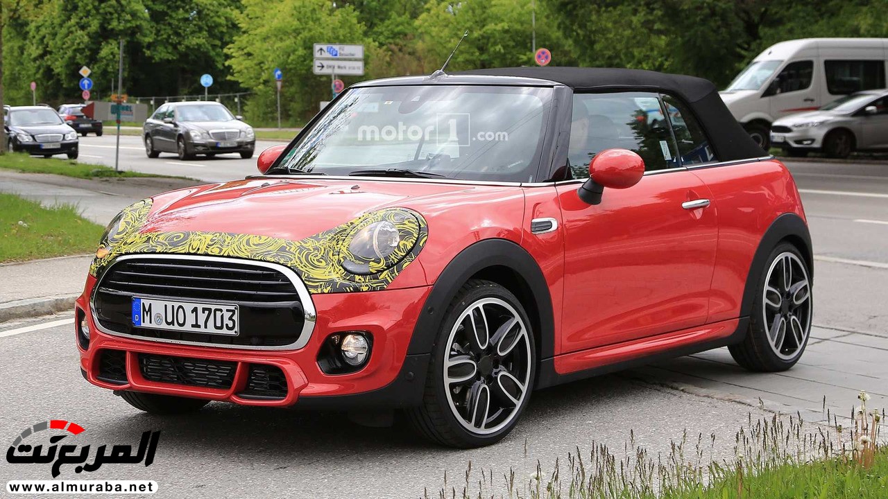 قد حان الوقت الآن لنرى عن كثب ما ستبدو عليه الميني كوبر كونفيرتابل -ذات السقف المكشوف-، وهي تمامًا كنسخة القياسية السقف الصلب لديها تمويهات خفيفة تشير لتحديثات محدودة تقبع بالمقدمة في المصابيح الأمامية الهالوجينية وأعلى شبكة المبرد.
