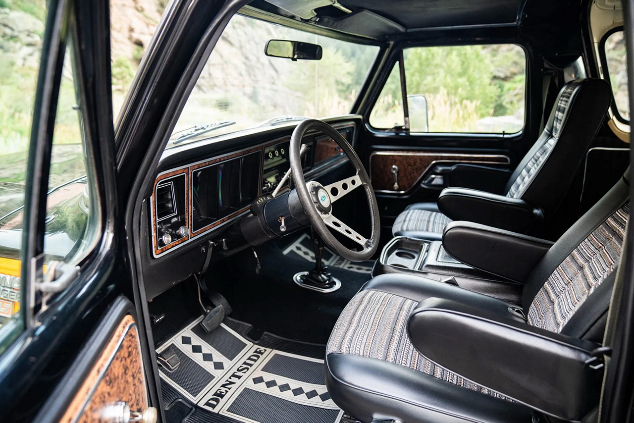 في الداخلية حصلت فورد برونكو الكلاسيكية من عام 1979 على عملية تجديد شاملة مع مراعاة المظهر الكلاسيكية الأصلي، والذي لم يمنع ذلك مالك السيارة من إضافة نظام سمعي عالي الجودة مع جهاز راديو بمظهر كلاسيكي حتى يتناسب مع تصميم لوحة القيادة، وكذلك حصلت على عجلة قيادة جديدة مع مقاعد من الجلد والقماش المطرز، والعديد من لمسات الخشب الصناعي، ومكيف هواء، وعازل صوتي.