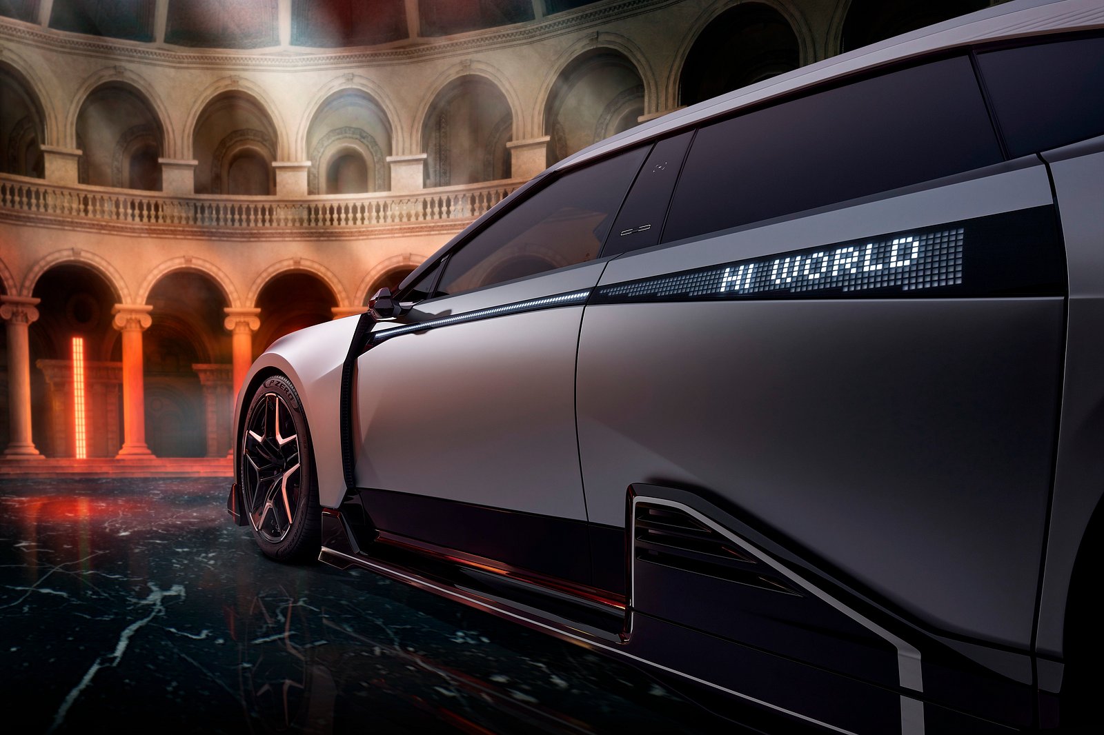 تعتمد سيارة هايفي A الجديدة على مظهر خارجي مشابه لسيارة هايفي Z الكهربائية والتي تتمتع بقوة 662 حصان، ولكن بفضل القوة الحصانية التي تعادل ضعف النسخة السابقة حصلت هايفي A على قدر كبير من التعديلات الخارجية الشرسة لتعزيز الديناميكا الهوائية للسيارة واستقرارها على السرعات العالية، وخاصة مع مظهر الجناح الخلفي الضخم من ألياف الكاربون.