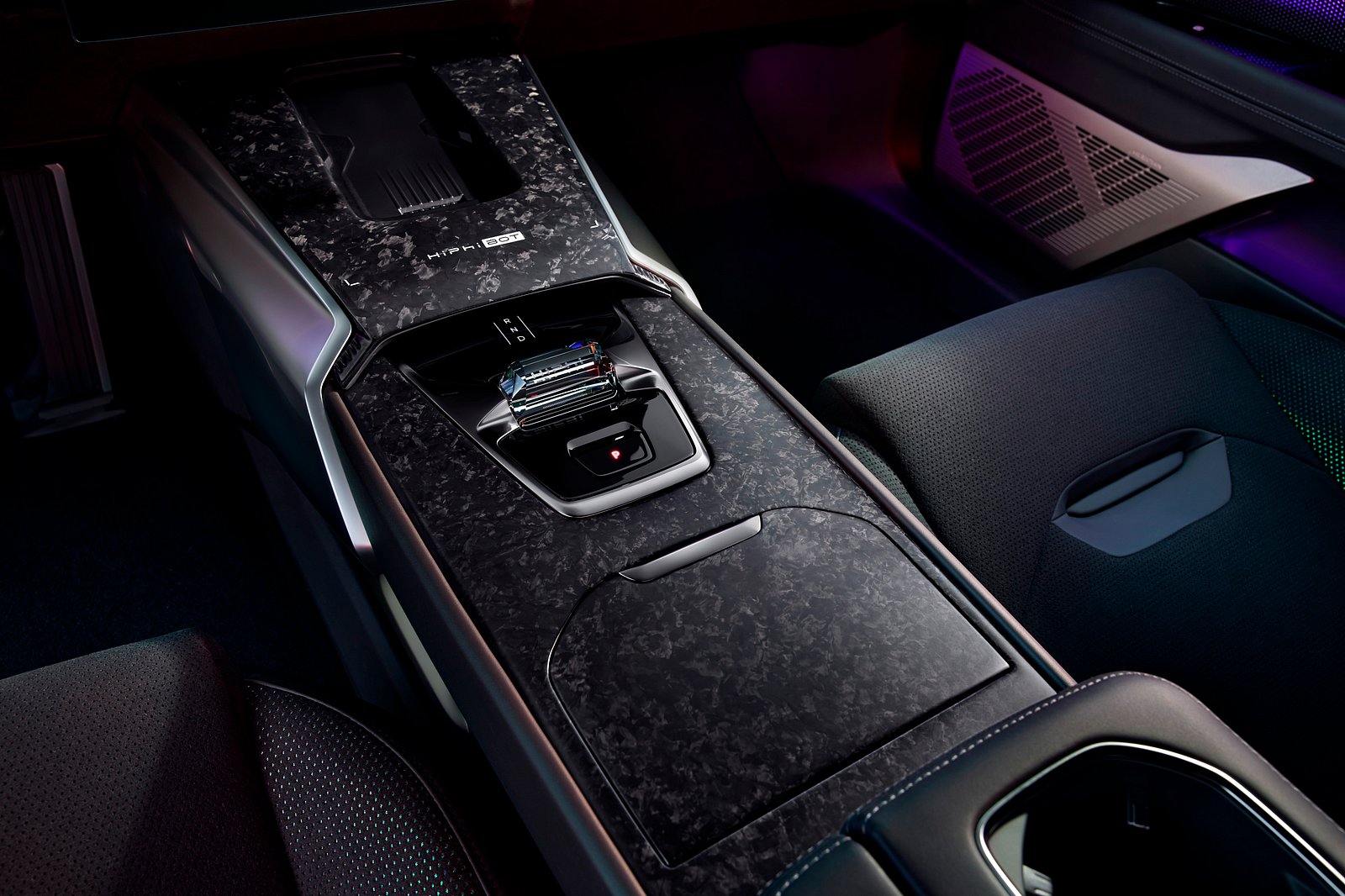 ظهرت القطع المصنعة من ألياف الكاربون في جميع أنحاء السيارة بداية من الشبكات الهوائية الأمامية الكبيرة وصولاً إلى مشتت الهواء الخلفي، بالإضافة إلى داخلية السيارة التي تعتمد على ألياف الكاربون لدعم المقاعد الرياضية وتعزيز الطابع الرياضي بالكونسول الوسطي ولوحة القيادة حيث تظهر الشاشة الوسطية الكبيرة لنظام المعلومات الترفيهية، والشاشات الجانبية التي تحل موضع المرايات التقليدية.