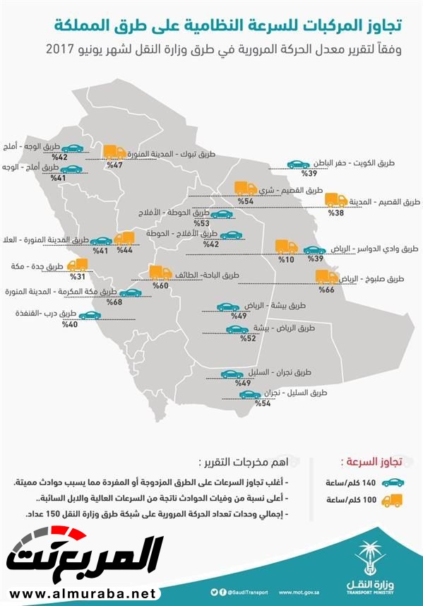 المربع نت – أصدرت وزارة النقل تقريرا شاملا عن معدل الحركة المرورية على شبكة الطرق بالمملكة، حيث تقوم بدراسة بيانات الحركة في أكثر من 150 موقعا بالمملكة، عبر أجهزة تعداد الحركة على شبكة الطرق لمعرفة حجم وأنواع حركة المرور.
