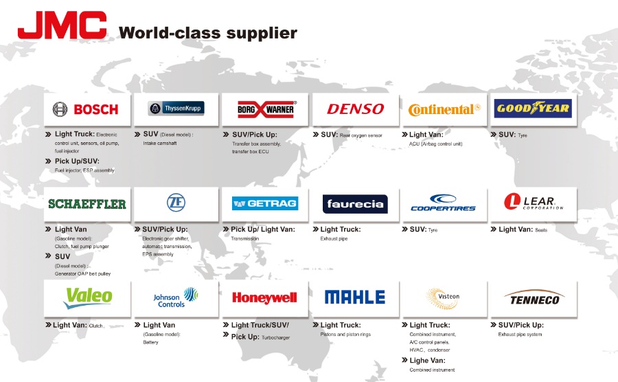 بجانب فورد، تجمع JMC علاقات مع شركات توريد أخرى من الولايات المتحدة ونعد منها التالي.