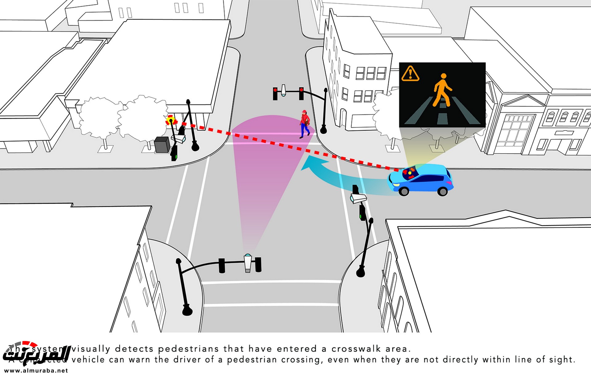 نظام “التقاطع الذكي” يستخدم برمجيات التعرف على الأجسام لهوندا، بالإضافة إلى الكاميرات الموضوعة على المنعطفات في الطرق العامة لتمكين السيارة من الرؤية عبر المباني وحولها.