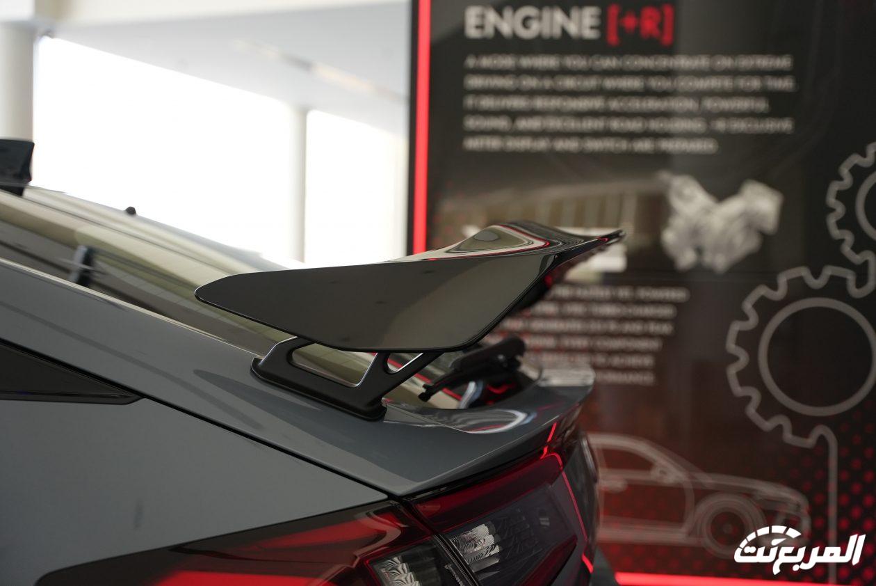 ويمكن ملاحظة بصمة Type R على الشبك العلوي وفي الخلف كذلك، بجانب وجود مصد أمامي الذي يدعم توجيه الهواء إلى أقراص العجلات الأمامية.