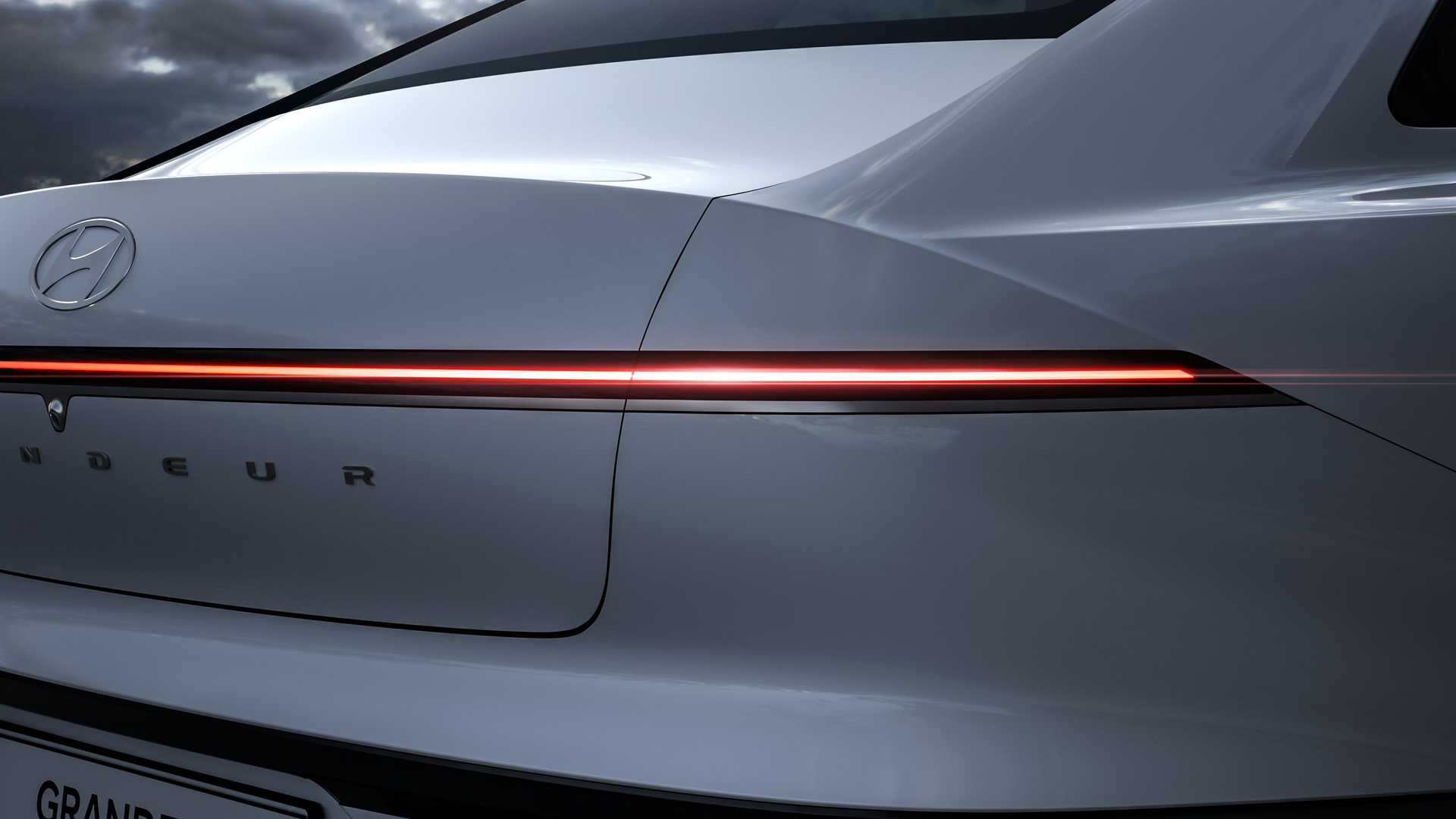 من المتوقع أن هيونداي ازيرا الجديدة موضوعة في المنتصف بين جينيسيس G90 و G80 من ناحية الحجم والطول، ونرى في الخلفية شريطاً ضوئياً بعرض الخلفية بأكملها، مع حروف Grandeur بارزة وهو اسم السيارة في بعض الأسواق العالمية.