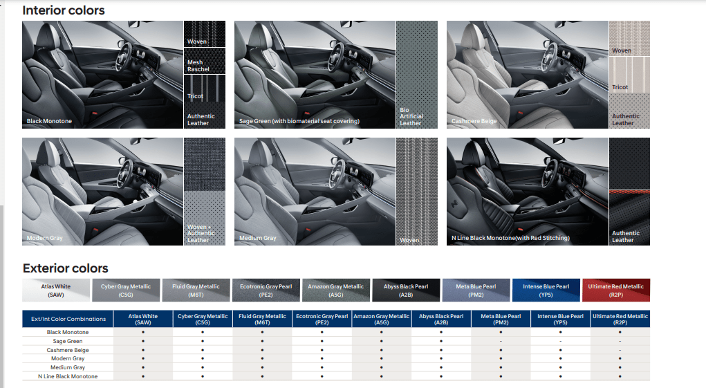 تتوفر هيونداي النترا 2024 بمجموعة متميزة وجذابة من الألوان في الداخل والخارج التي تتمكن من خلالها جذب الأنظار والحصول على رضا وإعجاب العملاء وتأتي خيارات الألوان الخارجية كالآتي: