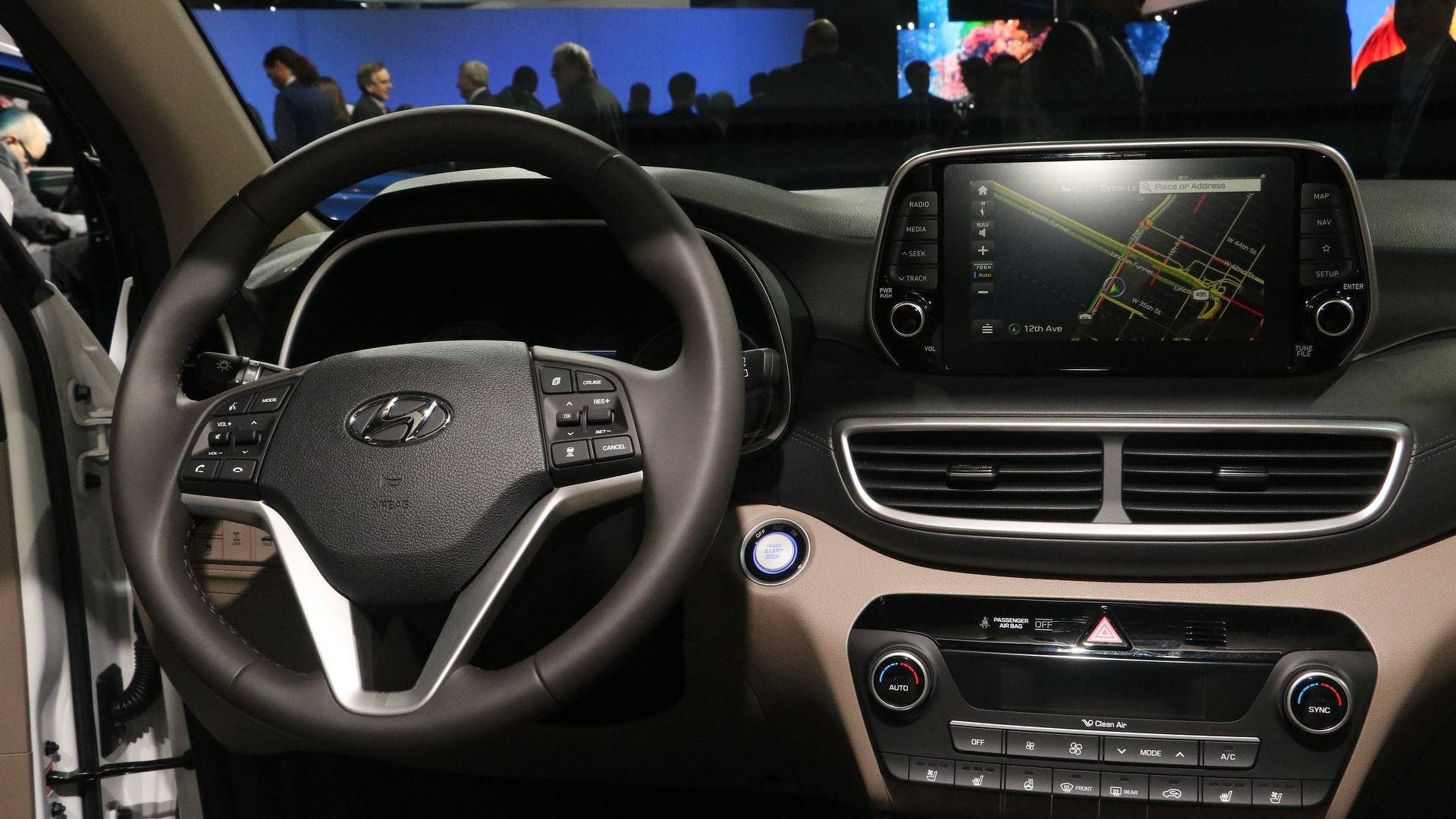 من الداخل، تأتي توسان مع نظام معلومات وترفيه بشاشة 7 إنش تقدم أبل كاربلاي وأندرويد أوتو بشكل قياسي.