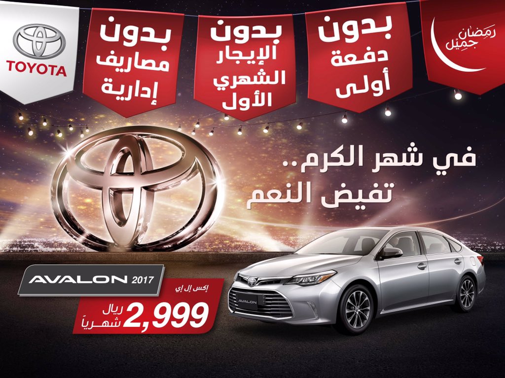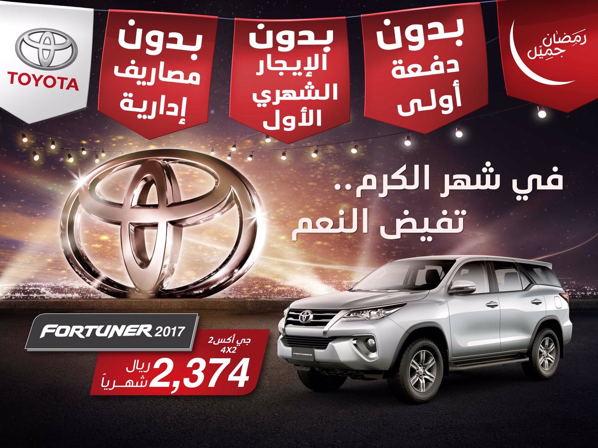 المربع نت – طرحت شركة تويوتا عبداللطيف جميل المحدودة للسيارات أكبر وكيل لتويوتا في منطقة الشرق الاوسط عروضها على سيارات تويوتا في شهر رمضان المبارك, حيث قدمت العروض الرمضانية لهذا العام بدون اي دفعة أولى وكذلك بدون الدفعة الاولى للإيجار الشهري الأول كما انه بدون اي مصاريف ادارية.