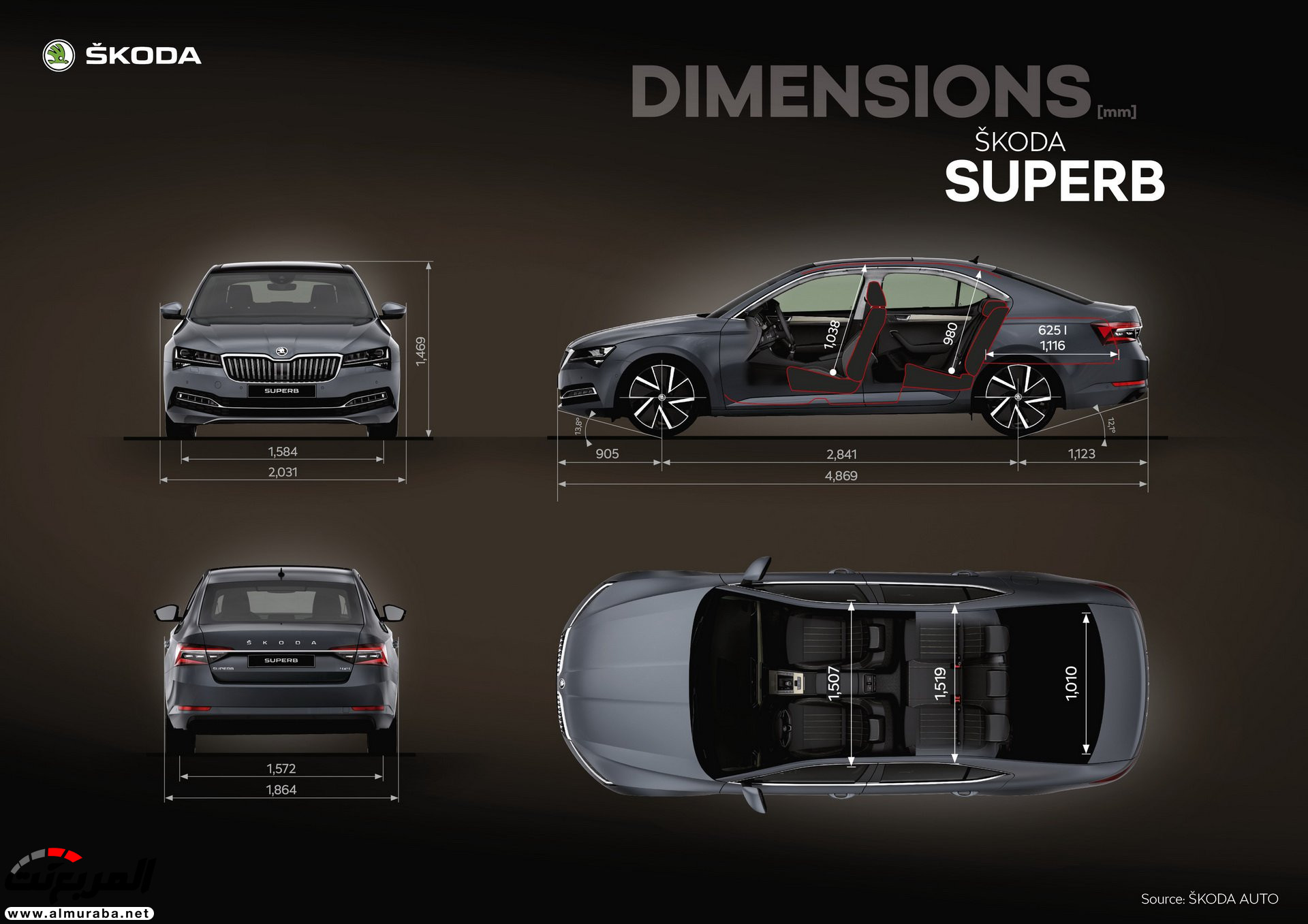 هذا وتتوفر سكودا سوبيرب بمجموعة متنوعة من المحركات التي تتضمن 1.5 لتر TSI ذو قوة 150 حصان للفئة الأقل متصلاً بناقل 6 سرعات يدوي أو 7 سرعات DSG، بجانب محرك 2 لتر TSI بقوة 190 حصان مع ناقل 7 سرعات DSG قياسي، فيما تأتي الفئة الأعلى مع محرك 2 لتر بقوة 272 حصان ودفع رباعي مع ناقل 7 سرعات DSG وفلتر لجزيئات العادم، بجانب وجود نسخة هجينة، لتكون موجهة لمنافسة عدة طرازات مثل فولكس واجن باسات ومازدا 6، حيث ستصل للأسواق قرب نهاية العام الجاري أو مطلع العام المقبل.