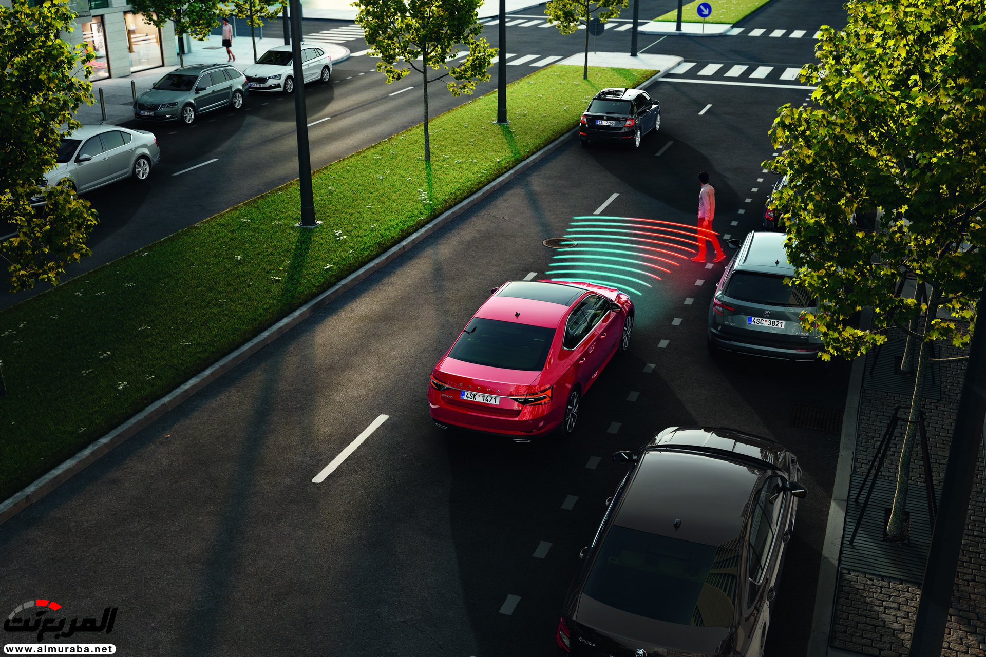أما بالتقنيات، سوف نجد أنه بجانب نظام الإضاءة الجديد، تحمل سوبيرب اثنين من أنظمة مساعدة السائق الأخرى على هيئة أحدث نسخ مثبت السرعة المتكيف ومساعد تفادي الاصطدام الأمامي مع رصد المشاة، حيث يعتمد الأول على صور الكاميرا الأمامية ومعلومات نظام تحديد المواقع الجغرافي لمعرفة الحد الأقصى للسرعة وتعديل السرعة حسب ذلك، كما يوجد نظام مساعدة للطوارئ يوجه السيارة نحو أحد جانبي الطريق في المواقف الخطيرة ويوقفها تماماً في حالة ضرورة ذلك، مع وجود مساعد للرؤية الجانبية قادر على رصد السيارات القادمة من نقاط الرؤية العمياء لدى السائق بمسافات تصل إلى 70 متر، على عكس أنظمة رصد النقطة العمياء التي لا يتعدى مداها 20 متر.