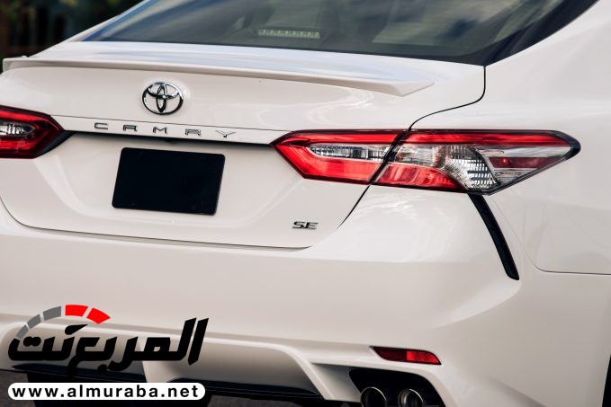 في خلف السيدان العائلية الجديدة، ستلاحظ أن الحروف منفصلة عن بعضها، هذه كانت مشكلة لأنها بهذا الشكل تزيد من وقت وتكلفة الإنتاج، إلا أن المصممين رأوا أنها بذلك ترمز إلى تغيير كبير أجرته تويوتا على الكامري، وأنّه شيء هي فخورة به.
