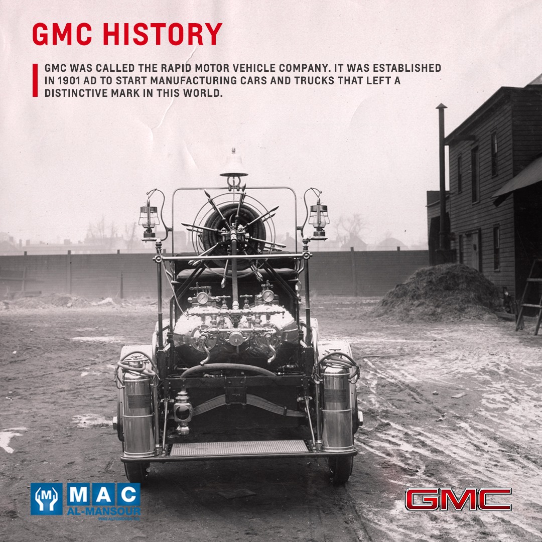1- اسم الشركة: تأسست جي ام سي من قبل الأخوان جرابوسكي في ديترويت بعام 1901 ميلادية، وحرف G في الاسم لا يشير إلى اسمهما، فقد سميت الشركة بداية باسم شركة مركبة رابيد موتور، ثم اشترت شركة ثانية تسمى ريلانس (Reliance) واندمجت معها لتكوين شركة جنرال موتورز المعروفة اليوم اختصارا باسم GMC.