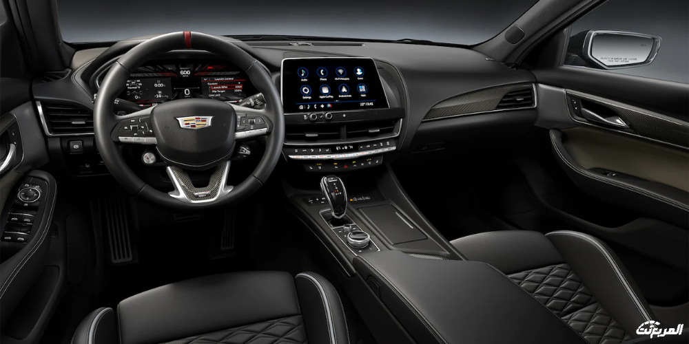 بالانتقال لداخلية CT5-V بلاك وينج نجد المقاعد المكسوة بالجلد، ومقود متعدد الوظائف مكسو بالجلد، وشاشة المعلومات الترفيهية 10 بوصة مع شاشة العدادات 12 بوصة وشاشة عرض على الزجاج الأمامي، و 15 سماعة Bose ، وشاحن لاسلكي في الأمام، وإضاءة داخلية محيطية.