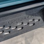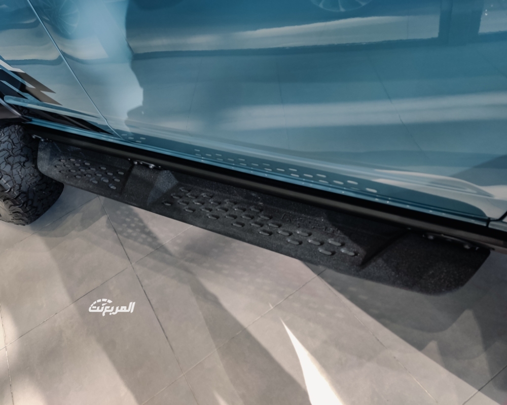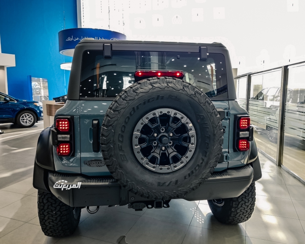 المربع نت – برونكو رابتر هي الفئة الأعلى من برونكو، تصبح أكثر قدرة على التضاريس بفضل تخصيصات تصميمية وميكانيكية، بما فيها جنوط عجلات ألمنيوم 17 بوصة يرتدي إطارات مقاس 37 بوصة بشكل قياسي وصفائح واقية فولاذية مثبتة بشكل استراتيجي لحماية مناطق مهمة بما في ذلك الصفيحة الأمامية السفلية وصفائح واقية للمحرك وصندوق التحويل وخزان الوقود، وتوجد عتبات جانبية قابلة للإزالة مع سكك للحماية من الصخور. ومن ملائمة الداخلية تتميز بأرضيات مطاطية تحتوي على مجاري مياه مدمجة لتسهيل إزالة الأوساخ دون حاجة لإزالة السجاد ويأتي فرش المقاعد مقاوم للعفن والرطوبة. تستمد القوة من محرك V8 بسعة 3.0 لتر توين تيربو مقترن بناقل حركة أوتوماتيكي من 10 سرعات ونظام دفع رباعي متطور يخرج قوة 418 حصان وعزم دوران 598 نيوتن متر. وتتمتع بحيز أكبر لحركة العجلات الأمامية بنسبة 60% ولحركة العجلات الخلفية بنسبة 40% مقارنة بطراز برونكو العادي، ويبلغ الارتفاع عن الأرض 332 مم، ليمكنها العبور من المياه بارتفاع 939 مم، وبفضل نظام التعليق والإطارات ومخمدات Fox تحسن من قدرات التشبث والسير على الكثبات الرملية.