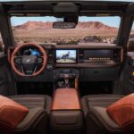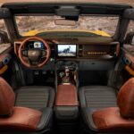 المربع نت – فورد برونكو هي سيارة اس يو في للطرق الوعرة تتوفر بخيارين للمحرك، V6 و 4 أسطوانات مع ناقل حركة 10 سرعات أوتوماتيك ونظام دفع رباعي، وبخيارين للتصميم، مع بابين أو 4 أبواب جانبية، بأبعاد الطول إلى العرض إلى الارتفاع: 4,811، 1928، 1852 مم لإصدار 4 باب، و 4,411، 1928، 1851 مم لإصدار بابين، وقاعدة العجلات بطول 2,950 و 2,550 مم على الترتيب، وخزان الوقود بسعة 78.7 و 63.9 لتر على الترتيب، وتأتي برونكو قياسا مع 6 أنماط قيادة منها الوحل/ الحفر وتحصل فئة وايلد تراك وبادلاندس على نمط باها، وتحصل بادلاندس على نمط الصخور/الزحف، حيث تعد بادلاندس هي فئة الفل كامل، وفي جدول المواصفات أدناه نتعرف على التجهيزات القياسية للفل كامل، وأرقام المحركين، على أن تكون أبرز الاختلافات بين الفئات شاشة المعلومات والترفيه مقاس 8 أو 12 بوصة ووجود كاميرات 360 درجة والحساسات الأمامية، وتتوفر العديد من التجهيزات الاختيارية مثل مثبت السرعة المتكيف ونظام ملاحة مضمن في الشاشة وشاحن لاسلكي في الكونسول الأمامي.