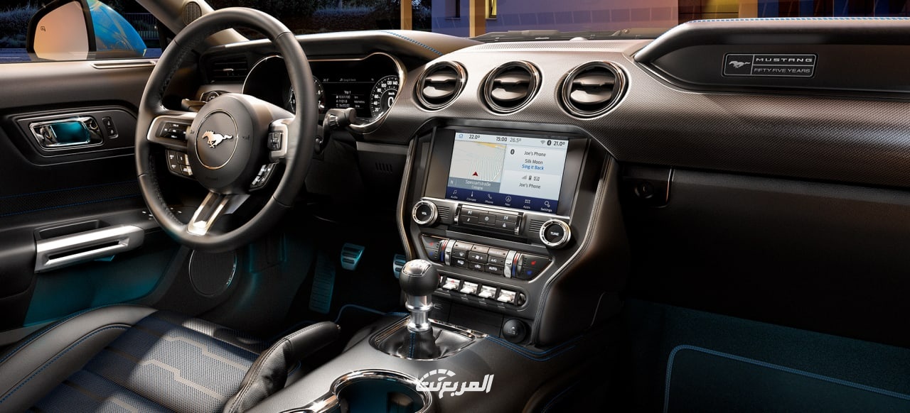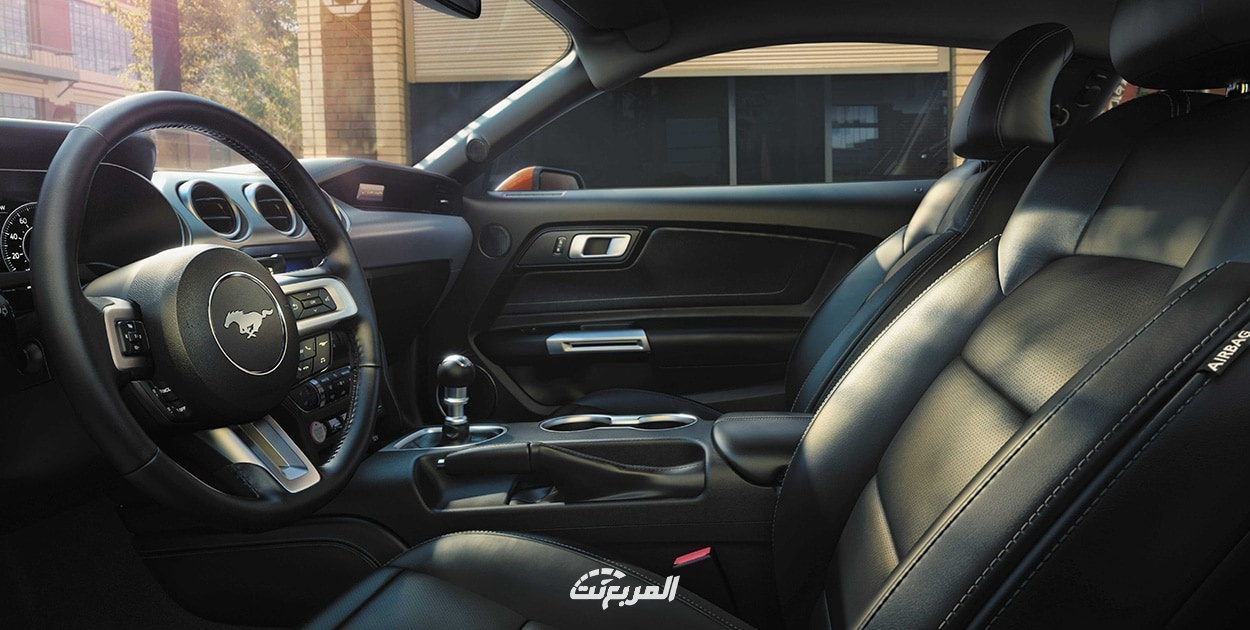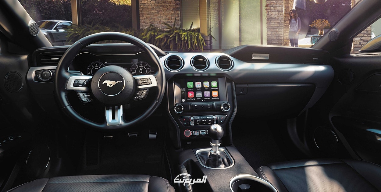 داخلية فورد موستنج 2022في الداخل، تتميز السيارة بكونها عصرية ورياضية بشكل كبير خصوصاً في مقود السيارة متعدد الوظائف والمغطى بالجلد، والذي تم تصميمه ليوفر تحكم أكبر في المناورات على الطرق والحلبات والذي يتوسطه شعار فورد موستنج الأكثر تميزاً ليعطي شعور رياضي أكثر لتجربة قيادة لاتنسى، كما يوجد شاشة عدادات لأول مرة بقياس 12 بوصة، مع شاشة ترفيهية بقياس 8 بوصة تدعم آبل كار بلاي وأندرويد أوتو مع بلوتوث، ويوجد أعلاها 3 مخارج للتكييف. أما المقاعد، فهي أيضاً تأتي بتصميم رياضي يدعم الركاب بشكل كبير لتثبيتهم في مقاعدهم أثناء القيادة الرياضية وعلى الحلبات، كما تتوفر بالجلد مع 5 مقاعد، أما المقاعد الأمامية فهي تتوفر بتحكم كهربائي بشكل كامل. محركات فورد موستنج 2022 في السعوديةأما عن المحركات، فتتوفر فورد موستنج 2022 في المملكة العربية السعودية بمحركين وهما: