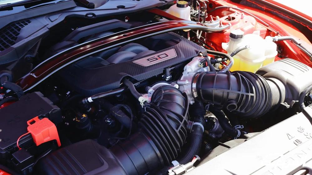 تعتمد موستنج على محرك V8 سعة 5.0 لتر بتنفس طبيعي، ينتج قوة 486 حصان وعزم 567 نيوتن متر، فيما ترتفع القوة إلى 500 حصان في إصدار “دارك هورس” عالي الأداء. وتتوفر السيارة بناقل حركة يدوي من 6 سرعات أو أوتوماتيكي من 10 سرعات، مع نظام دفع خلفي كلاسيكي يركز على متعة القيادة.
