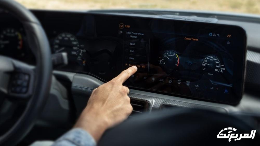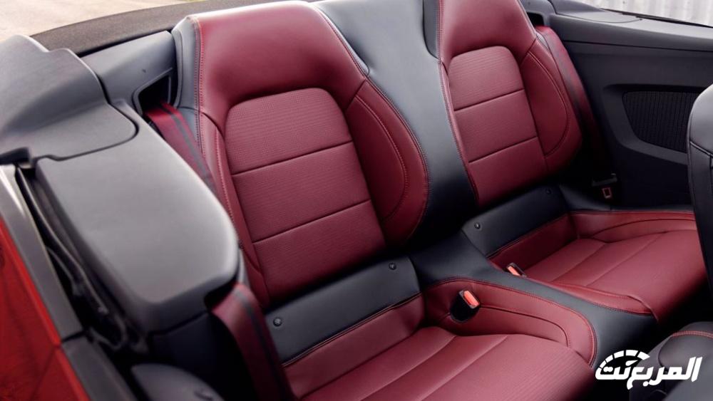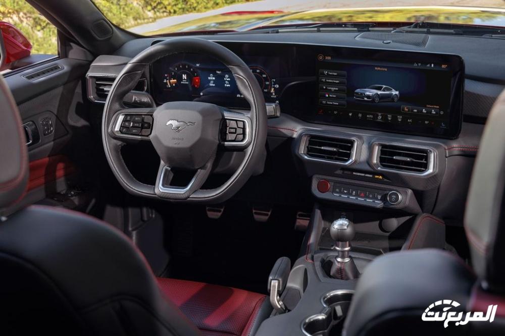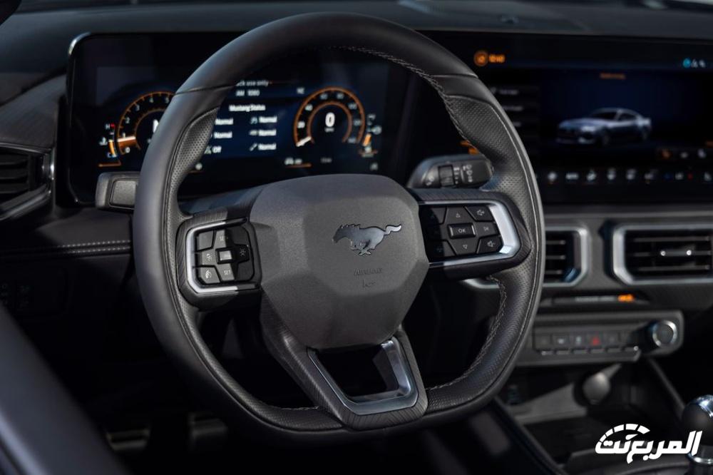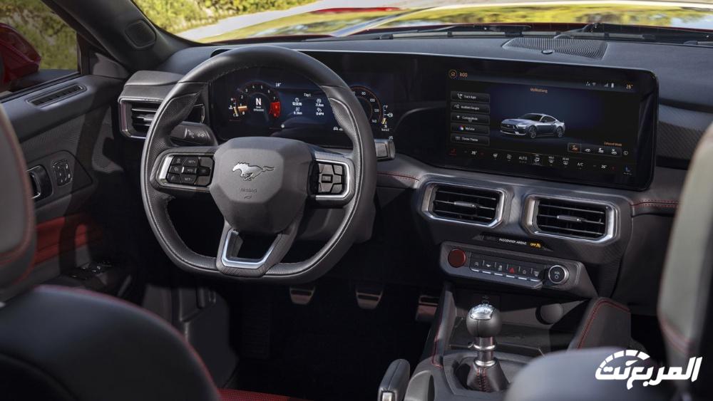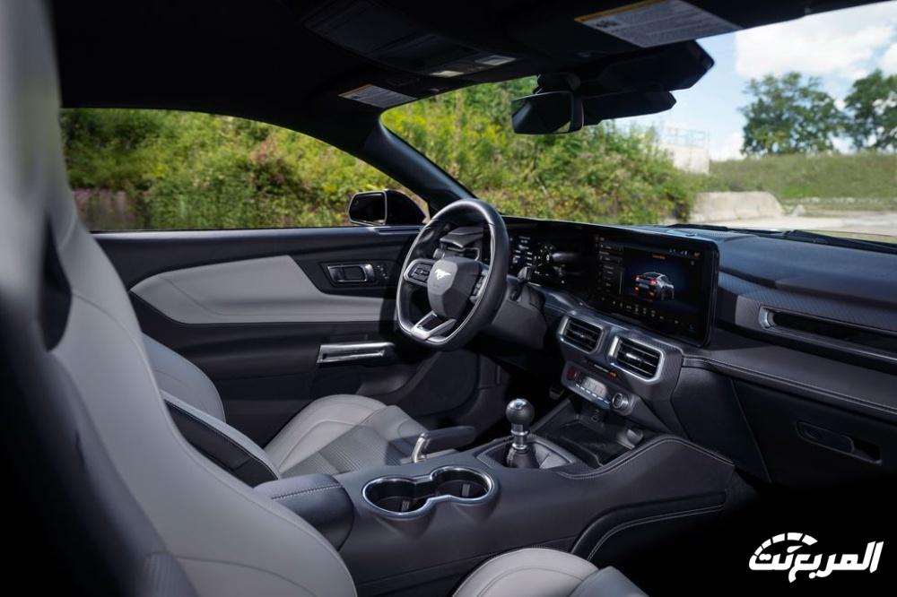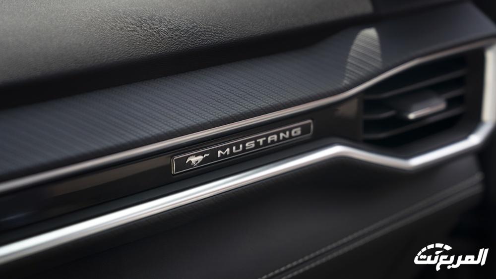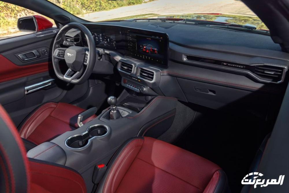 وفي الداخل، تقدم موستنج تجربة رياضية راقية مع مقاعد أمامية مكسوة بالقماش أو الجلد حسب الفئة، مزودة بخاصية التدفئة والتهوية والضبط الكهربائي، مع ذاكرة لمقعد السائق. المقود متعدد الوظائف مغطى بالجلد، ويأتي مكيف الهواء أوتوماتيكيًا بتحكم مزدوج المناطق، مع إضاءة محيطية أنيقة وشاحن لاسلكي للهاتف.