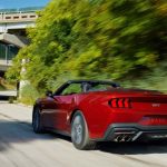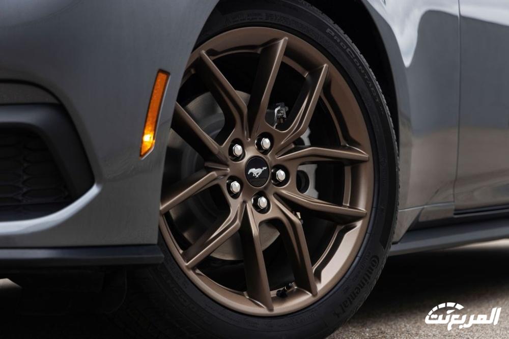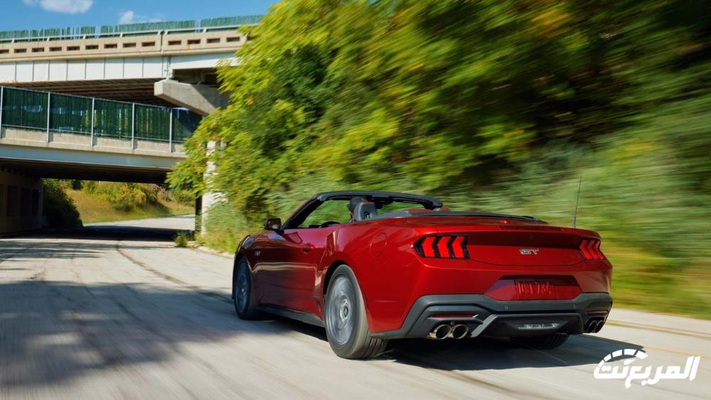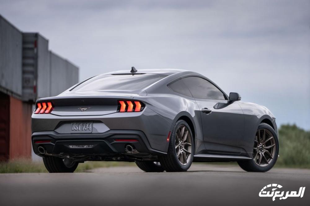 التصميم الخارجي يحتفظ بهوية موستنج القوية، مع مصابيح أمامية وخلفية بتقنية LED وإضاءة نهارية مميزة، إضافة إلى مرايا جانبية كهربائية الضبط والطي مزودة بخاصية التسخين ومؤشرات انعطاف، وتستقر على عجلات ألمنيوم رياضية بقياس 19 بوصة.