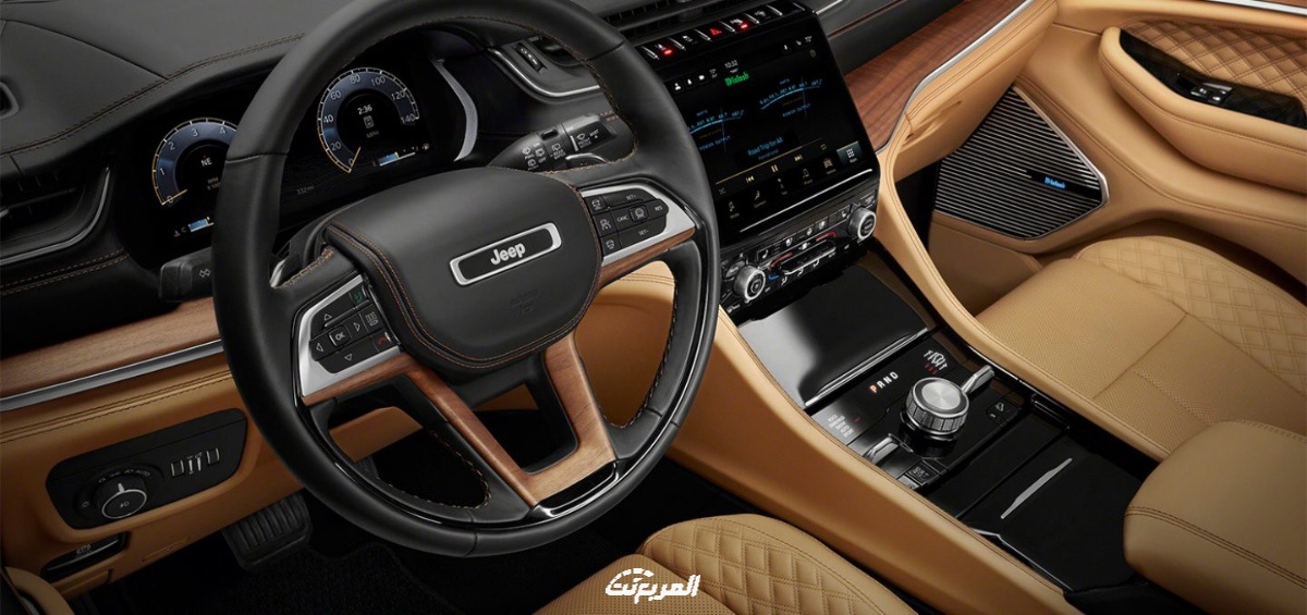 داخلية جيب جراند شيروكي 2022 تتوفر جيب جراند شيروكي 2022، بمقصورة داخلية معاد تصميمها، بإضاءة محيطة LED، متوفرة مع إعدادات لكل من النهار والليل، وثلاث صفوف من المقاعد تتسع لـ7 ركاب، والمقاعد الأمامية في السيارة بخاصية التدليك، وفضلًا عن الأسطح الفاخرة التي تتوفر في مقعد السائق والراكب الأمامي، بـ16 وضعية لتعديل المقاعد، ونظامًا كهربائيًا لأسفل الظهر مع ذاكرة، وتتوفر أيضًا مقاعد قابلة للتدفئة والتهوية في الصفين الأولين. وتأتي المقصورة الداخلية للسيارة مع شاشتين 10.1 بوصة، للمجموعة الرقمية ونظام المعلومات والترفيه مع دعم آبل كاربلاي وأندرويد أوتو، إلى جانب شاشات جديدة للمقاعد الخلفية تتميز بتلفزيون أمازون فاير المدمج للترفيه عن ركاب المقاعد الخلفية، كما يحصل الركاب في المقاعد الأمامية على شاشات الترفيه الخاصة بهم مع شاشة تفاعلية اختيارية مقاس 10.25 بوصة مع نظام الملاحة وعرض الكاميرا والترفيه المرئي، وأيضًا شاشة عرض أمامية متوفرة كاملة الألوان، على الزجاج الأمامي قياس 10 بوصة. محرك جيب جراند شيروكي 2022 تتوفر سيارة جيب جراند شيروكي 2022، بعدة خيارات للمحركات: