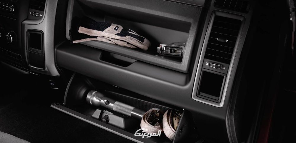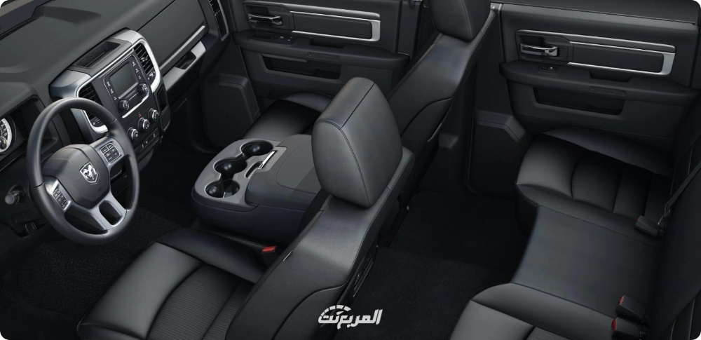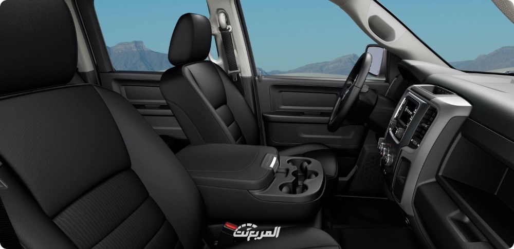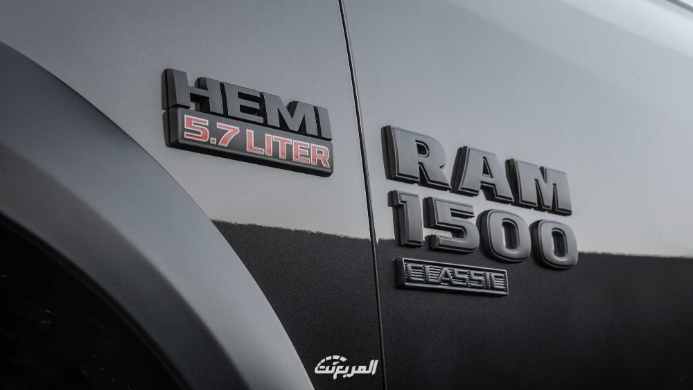 داخلية رام 1500 كلاسيكتأتي البيك اب بصف واحد أو صفين من المقاعد، مع غمارة واحدة تأتي مع مقعدين منفصلين أو 3 مقاعد متصلة، ومع غمارتين تأتي بصفين من المقاعد فتسع 5 أو 6 ركاب حيث تتوفر المقاعد الأمامية المتصلة أيضا، وتأتي المقاعد بكسوة من القماش الفاخر، كما أن المقاعد الأمامية قابلة للتعديل في كهربائيا حتى 10 وضعيات، ويتوفر لها ميزة التدفئة، ويأتي المقود مكسوة بالجلد وبميزة التدفئة كتجهيز اختياري، وتوجد أماكن تخزين أرضية خلفية متوفرة اختياريا، كما توجد حجرة تخزين تحت المقعد الخلفي موجودة بشكل قياسي في جميع فئات غمارتين. والنوافذ يدوية أو آلية. من ناحية التجهيزات التكنولوجية يوجد شاشة عدادات رقمية مقاس 7 بوصة وسط لوحة العدادات، وتأتي شاشة المعلومات والترفيه بواجهة المستخدم يوكونيكت 3 بشكل قياسي بمقاس 5 بوصة، على أن يتوفر نظام يوكونيكت 4 مع نظام ملاحة متطور، حينها تكون الشاشة بمقاس 8.4 بوصة مع دعم البلوتوث والاقتران بتطبيقات الجوال الذكي عبر أبل كاربلاي وأندرويد أوتو، وتدعم بث نقطة الواي فاي المحمولة Hotspot، وتأتي مع منافذ USB في الأمام والخلف، وتأتي بنظام الصوت القياسي من 6 سماعات، فيما يتوفر نظام ألباين مع 9 مكبرات صوت. ونظام التكييف يدوي التحكم بشكل قياسي، كما يتوفر أوتوماتيكي ثنائي التحكم ضمن حزم التجهيزات. ويمكن الدخول إلى المقصورة بدون مفتاح، على أن يتوفر نظام التشغيل عن بعد بشكل اختياري. مواصفات رام 1500 كلاسيك 2022تتوفر البيك اب رام 1500 كلاسيك 2022 بخيارين للمحرك، كل منهما يأتي مع ناقل الحركة 8 سرعات أوتوماتيك، مع نظام الدفع الخلفي أو الرباعي: