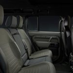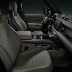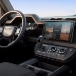 بالانتقال إلى داخلية ديفندر 110 نجد مقاعد بكسوة مقاومة ومقود متعدد الوظائف، أما عن شاشة المعلومات والترفيه فتأتي بمقاس 11.4 بوصة تدعم أنظمة آبل كار بلاي لاسلكي وأندرويد أوتو لاسلكي.