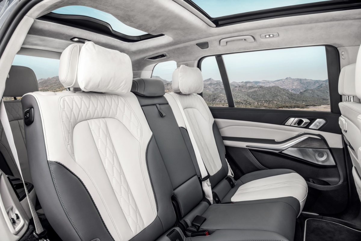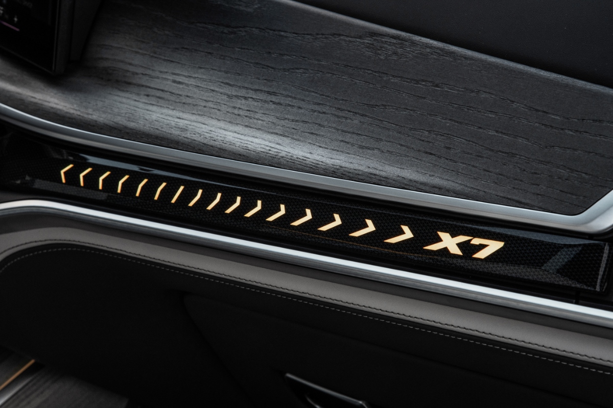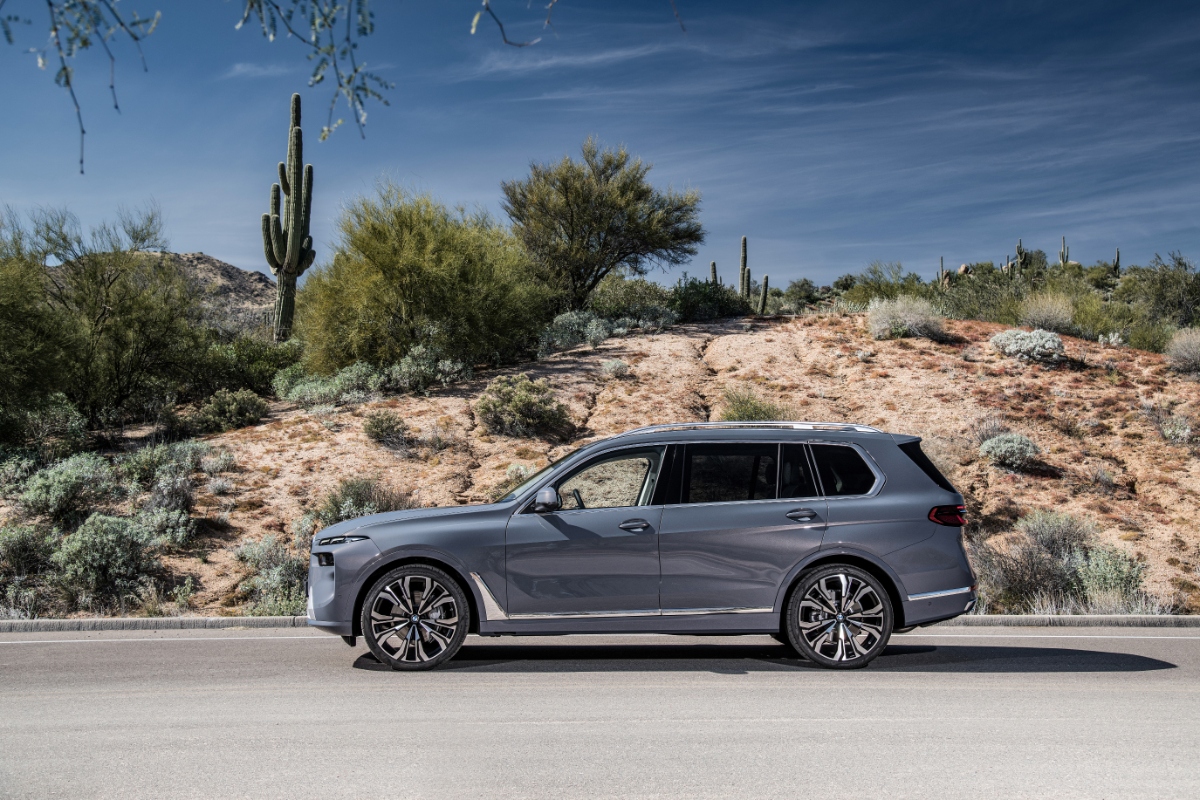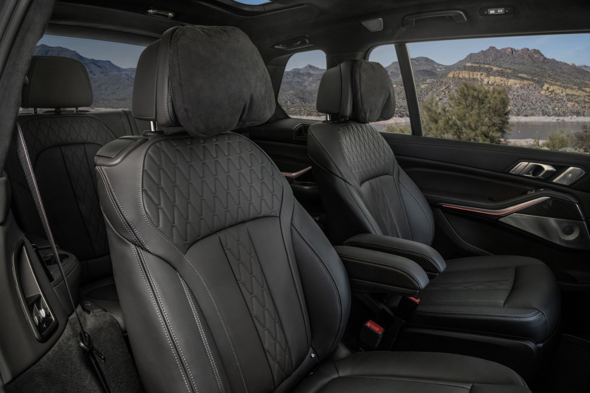 المربع نت – بي ام دبليو X7 هي أكبر وأفخم اس يو في من الصانع الألماني، تتوفر لموديل 2023 في تحديث الفيس ليفت الذي وصل حديثا إلى السعودية من خلال الوكيل الحصري شركة الناغي للسيارات، تتوفر السيارة بداخلية رحبة مع 3 صفوف من المقاعد تكفي 7 ركاب ومتوفرة مع مقعدين منفصلين في الصف الثاني لتكفي 6 ركاب. التركيز على الراحة والفخامة في الداخلية يصل إلى الصف الثالث من المقاعد فيأتي نظام مكيف الهواء مع 5 مناطق تحكم منفصلة بما فيها عناصر تحكم مستقلة للصف الثالث حيث توجد فتحات المكيف في السقف، وتجد منافذ الشحن USB في جميع الصفوف. ويمكن التحكم في جميع المقاعد كهربائيا، والصف الثاني يدعم الانزلاق كهربائيا إلى الأمام من أجل إتاحة مساحة دخول للصف الثالث، ويدعم التقديم والتأخير كهربائيا للموازنة بين مساحة الجلوس في الصف الثاني والثالث، كما يدعم الطي كهربائيا من أجل خلق مساحة أمتعة مهولة تصل 2,120 لتر. المقاعد الأمامية تحصل على مزايا التدفئة والتبريد والتدليك والضبط كهربائيا في الكثير من الاتجاهات مع ذاكرة لحفظ أكثر من وضعية جلوس لكل من مقعد السائق ومقعد الراكب الأمامي. ومزايا التدفئة مدعومة أيضا في المقود ومقاعد الصف الثاني. وهناك شاشة معلومات وترفيه بمقاس 14.9 بوصة بنظام بي ام دبليو المحدث ليقدم تجربة سلسة، وبالطبع يدعم التحكم في بعض الوظائف من خلال إيماءات اليد، مع التكامل مع آبل كاربلاي وأندرويد أوتو، ويأتي نظام الصوت من هارمن كاردون. وفي ظهر مقعد السائق والراكب الأمامي منافذ تسمح بتعليق شاشات ترفيه كميزة اختيارية. ومن ناحية أنظمة السلامة ومساعدة السائق فحدث ولا حرج عن الطرق المتعدد لتفادي التصادم الأمامي والخلفي بتحذيرات مرئية وصوتية وباهتزاز المقود، كما يوجد نظام فرملة طوارئ ذاتية يتدخل في حالات الحرج بالقدر اللازم بين الكبح الخفيف والكبح الكامل، ويوجد نظام ركن تلقائي يعتمد على كاميرا رؤية محيطية وحساسات أمامية وجانبية وخلفية. تتوفر سيارة BMW X7 بخيارين من المحرك في السعودية xDrive40i و M60i xDrive، في هذه الصفحة تجد مقارنة بين أرقام المحركين الرسمية. وقد تم ذكر التجهيزات أدناه بناء على مواصفات xDrive40i بحزمة M Sport المتوفرة عند الوكيل في السعودية.
