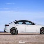 المربع نت – ألفا روميو جوليا 2022، هي سيارة سيدان مدمجة من العلامة الإيطالية، تتمتع بشخصيتها المتميزة وتظهر بديناميكية التصميم الخارجي الرياضي والأنيق، فضلًا عن التجهيزات والتقنيات المتطورة التي تتمتع بها السيارة جوليا؛ والتي تعطيك إحساسًا أقوى بالراحة والتميز أثناء قيادتك للسيارة. نستعرض لكم في هذه المقالة مواصفات الفا روميو جوليا 2022 في السوق السعودي. التصميم الخارجيتتوفر الفا روميو جوليا 2022، بتصميم خارجي متميز وفريد يُظهر شخصيتها الرياضية، حيث يتميز الجسم الخارجي للسيارة بتفاصيل فريدة منها المصدات الامامية، وفتحة التهوية لغطاء المحرك، بالإضافة إلى إضافات ألياف الكربون. كما تتمتع السيارة في تصميمها الخارجي بمصابيح أمامية زينون مع نظام الإضاءة الأمامي التكيفي، ومصابيح خلفية LED، وإضاءة نهارية LED، كما يتوفر إضاءة مقابض الأبواب الخارجية، مع مرايا خارجية للرؤية الخلفية قابلة للطي ذاتية التعتيم، ومساحات زجاج مع حساس المطر، واقيات جانبية من ألياف الكربون، وعجلات أمامية وخلفية مع مكابس مكابح ملونة مقاس 19 بوصة، كما توفر فتحة سقف آلية. وإليكم بعض الأرقام عن أبعاد السيارة: