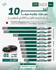 أكثر سيارات يابانية مبيعًا في السعودية خلال النصف الأول من عام 2024 بالأرقام