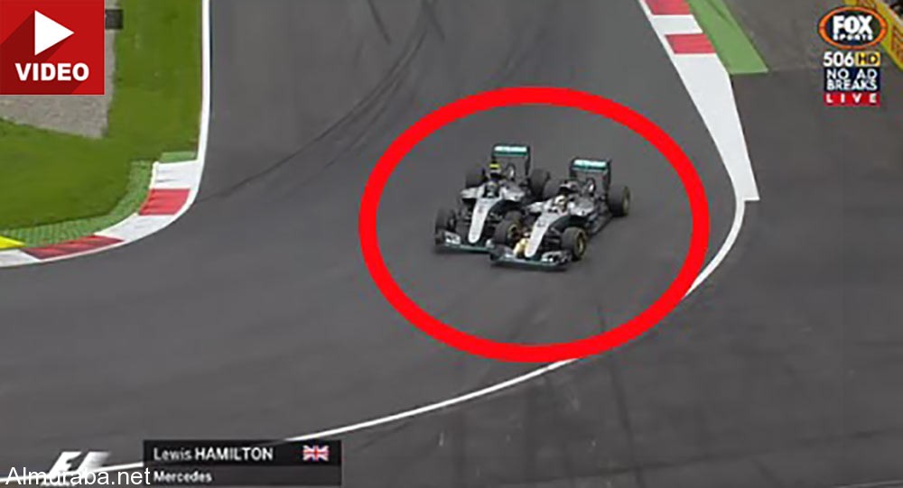 “فيديو” حادث تصادم هاميلتون وروزبرغ في اللفة الاخيرة من سباق الفورمولا 1