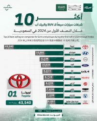 أكثر 10 سيارات مبيعاً في السعودية خلال 2024 .. تويوتا تُسيطر
